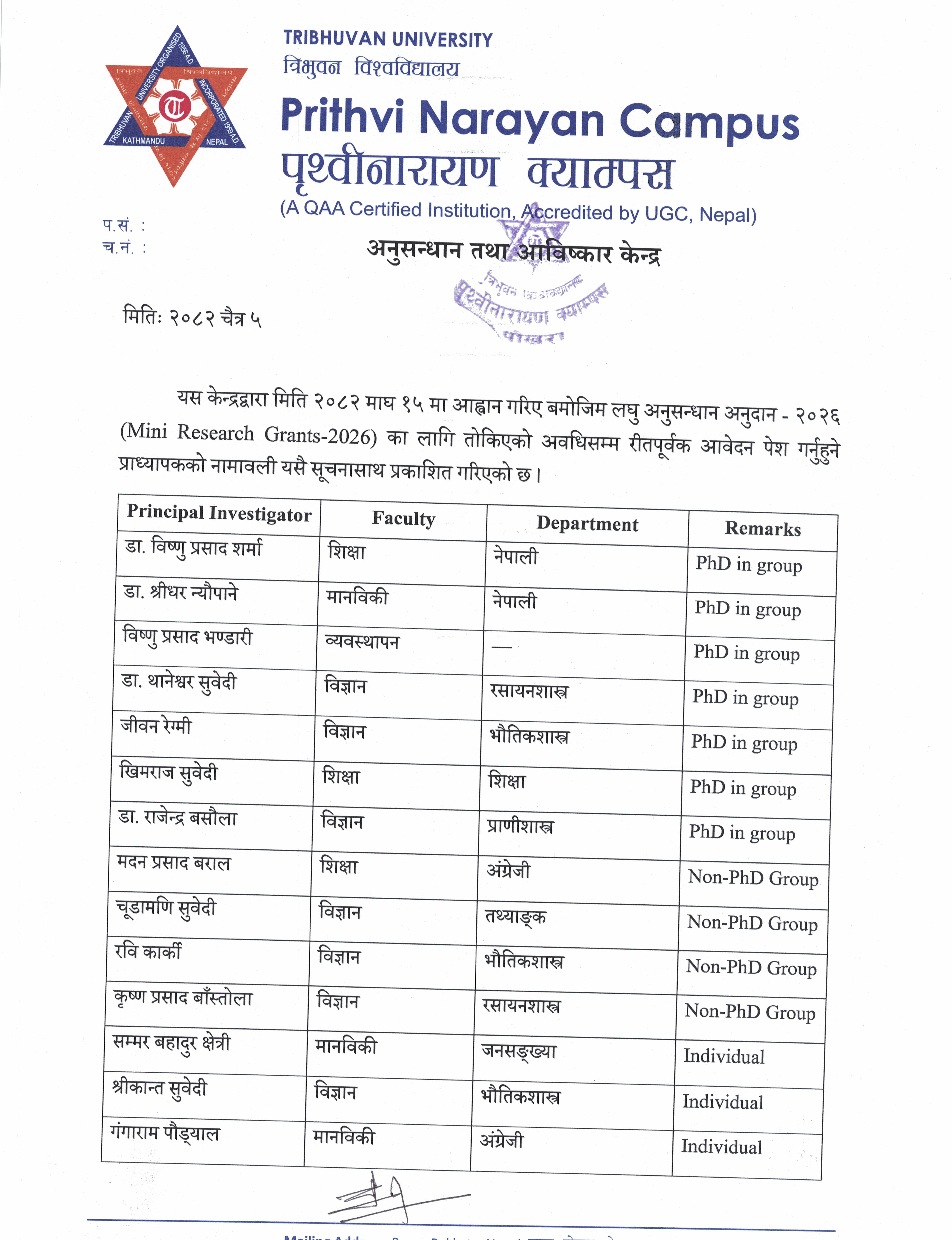 विश्वविद्यालय अनुदान आयोग कार्यक्रम कार्यविधि २०८२ तथा उच्चशिक्षा छात्रवृत्ति व्यवस्थापन निर्देशिका, २०८० (प्रथम संशोधन) अनुरुप उच्च शिक्षामा पहुँच अभिवृद्धिका लागि अपाङ्गता भएका, आर्थिक रूपले विपन्न, दलित, मुस्लिम महिला, शहीद तथा द्वन्द्व पीडितका सन्तति र मुक्त कमलरी विद्यार्थीलाई उच्च शिक्षा अध्ययनका लागि छात्रवृत्ति उपलब्ध गराउने कार्यक्रम अनुरुप न्यूनतम योग्यता पूरा गरेका आर्थिक वर्ष २०८२/०८३ मा स्नातक/स्नातकोत्तर तह प्रथम वर्षमा भर्ना भई अध्ययनरत इच्छुक विद्यार्थीहरुवाट यही २०८२ चैत्र २५ गते कार्यालय समयभित्र छात्रवृत्ति सम्बन्धी दरखास्त फाराम आयोगको वेवसाइट www.ugcnepal.edu.np मा भएको उच्च शिक्षा छात्रवृत्ति मा Click गरी वा ugc.pathway.com.np मा Online माध्यमबाट फारम भरी निम्नानुसारका आवश्यक कागजात तथा सिफारिश पत्र समेत Upload गर्नु हुन जानकारी गराइन्छ ।