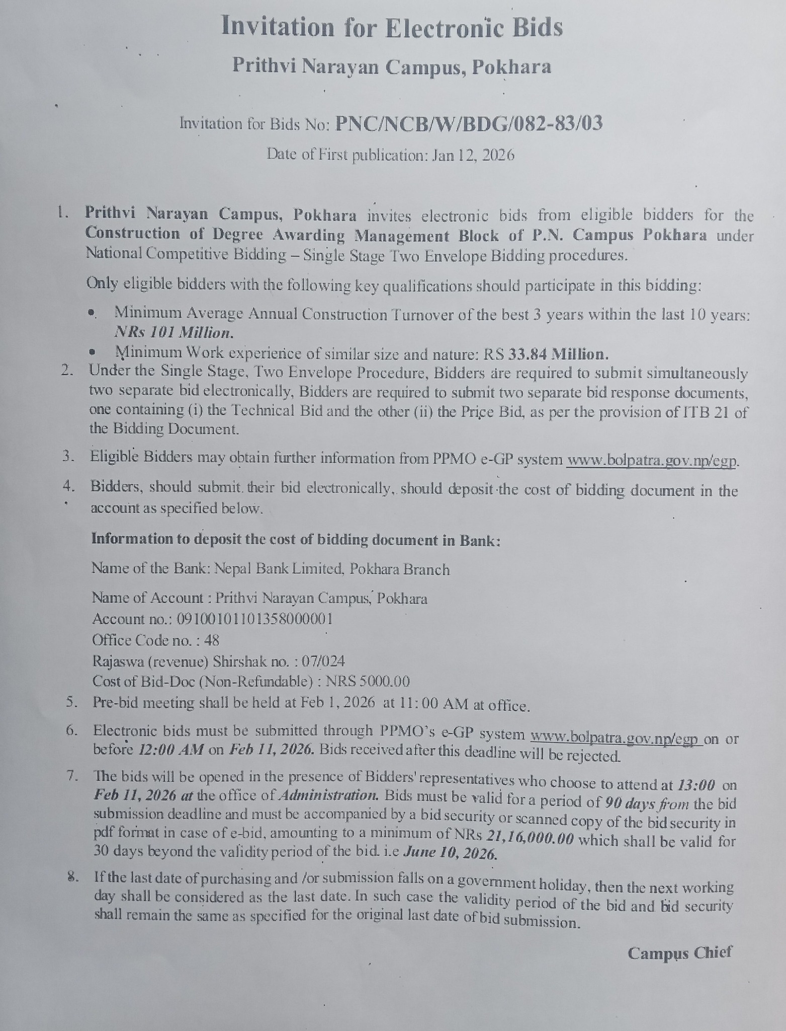 भवन निर्माणसम्बन्धी बाेलपत्रकाे सूचना