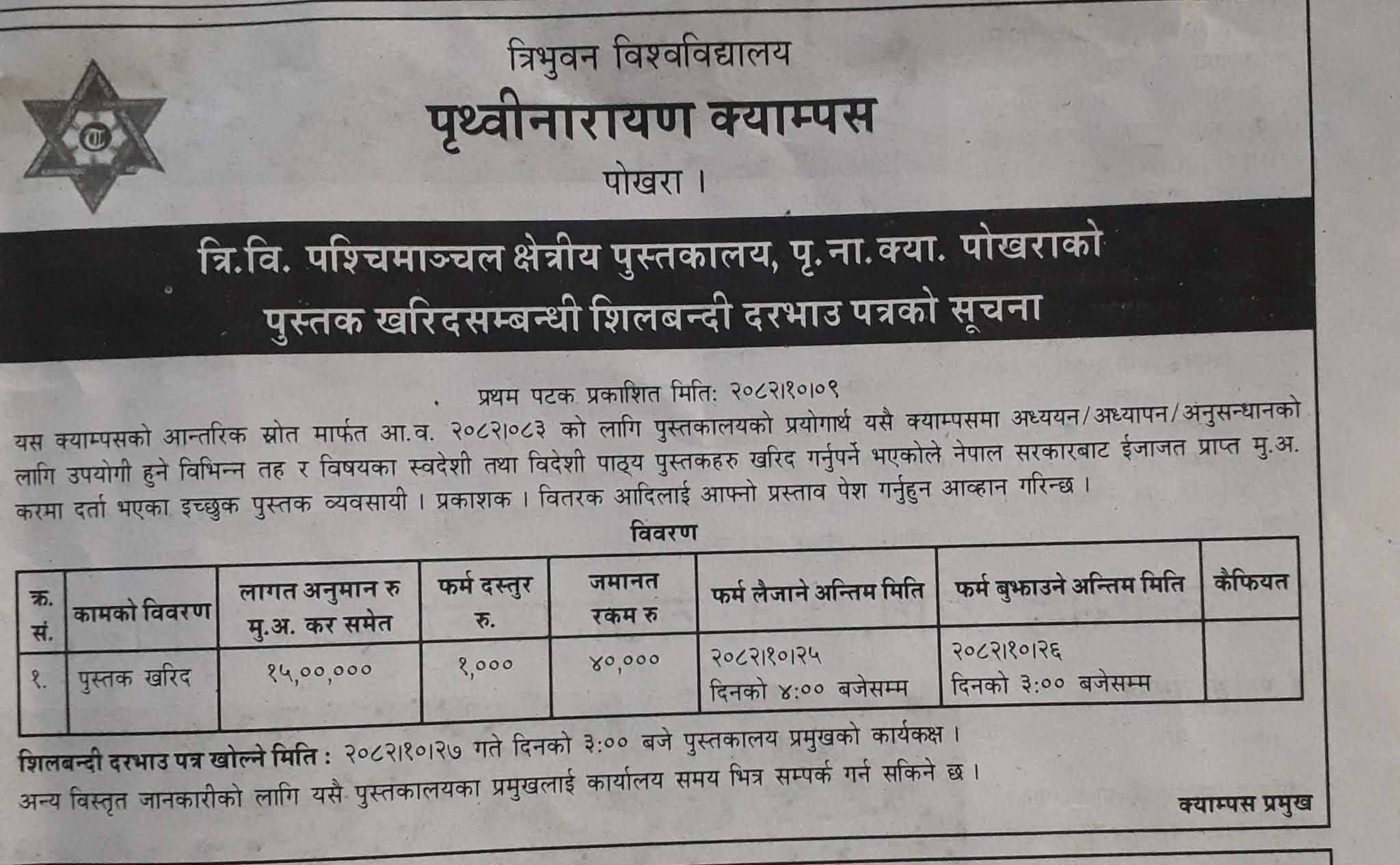 पुस्तक खरिदसम्बन्धी शिलबन्दी दरभाउ पत्रको सूचना
