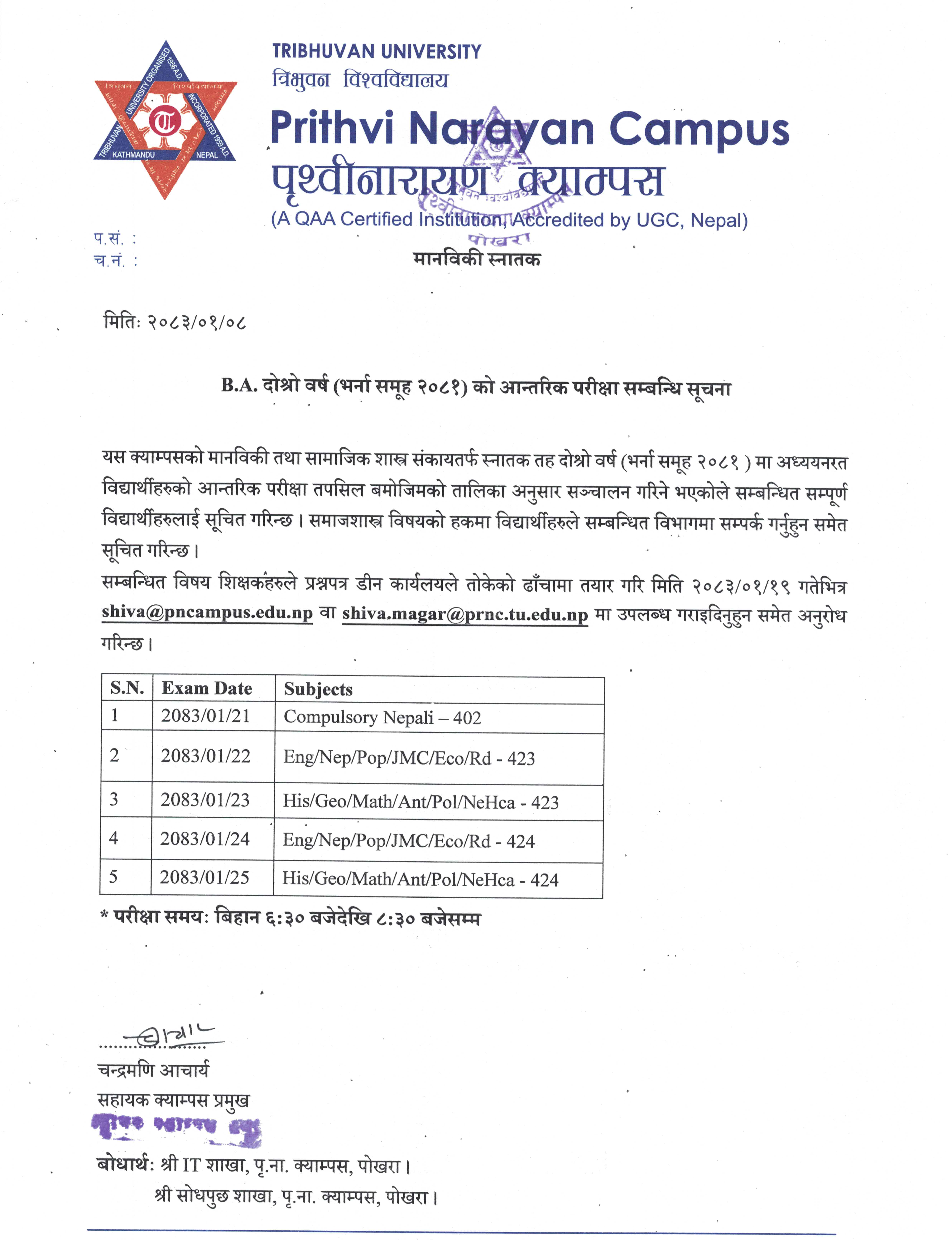 B.A. दोश्रो वर्ष (भर्ना समूह २०८१) को आन्तरिक परीक्षा सम्बन्धि सूचना