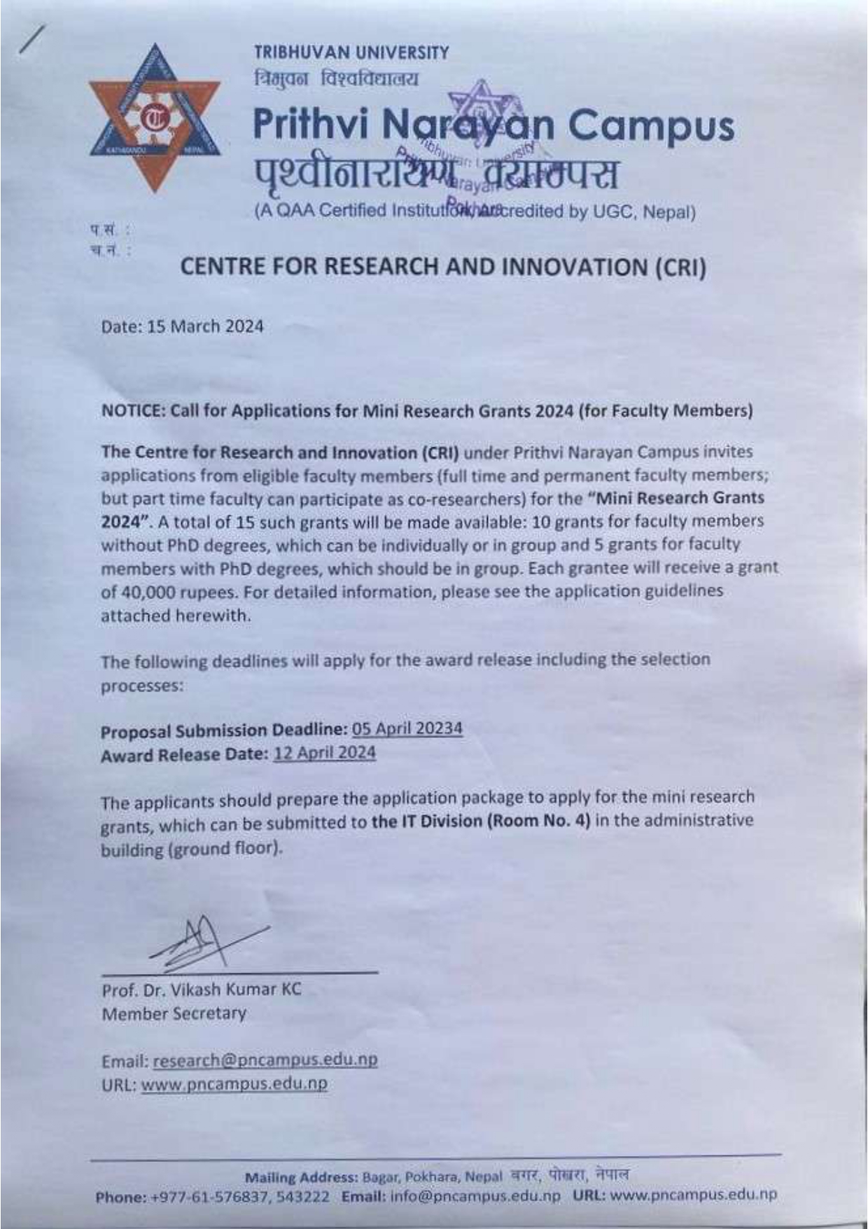 Call for Applications for Mini Research Grants 2024(for Faculty Members).