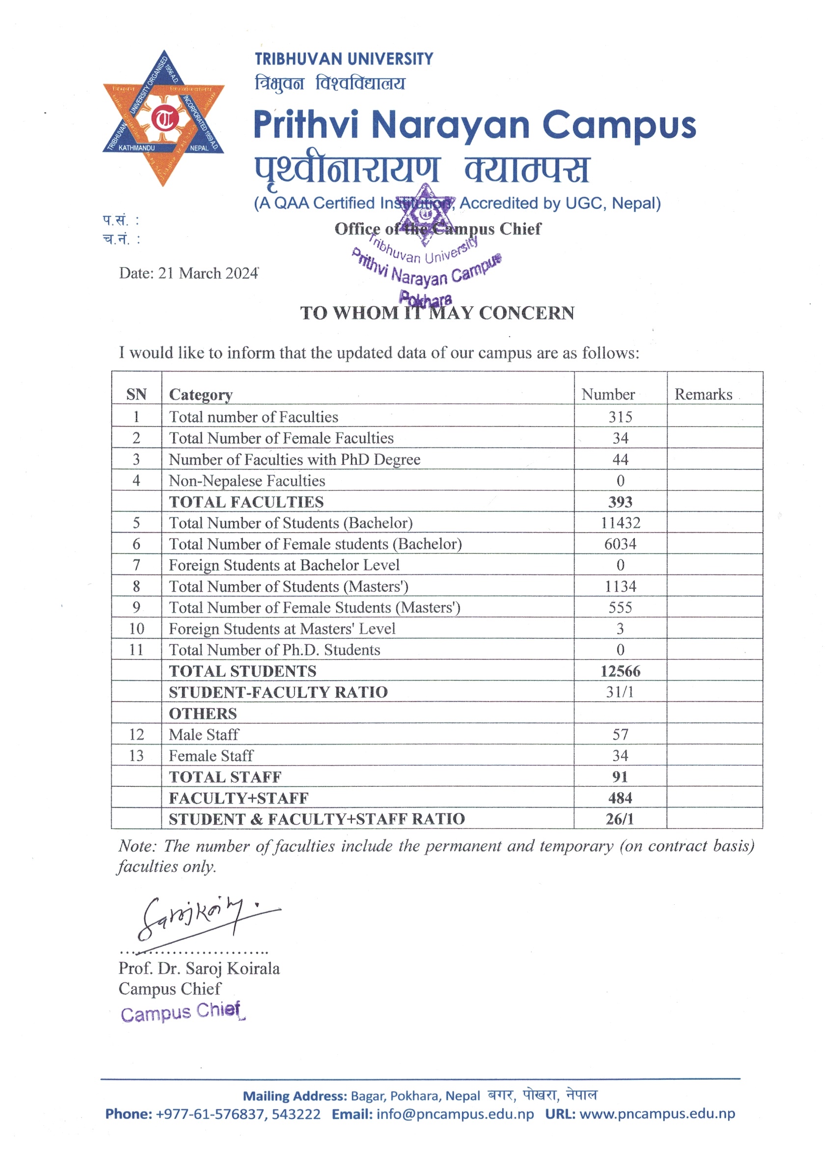 शिक्षक विद्यार्थी तथा कर्मचारीहरुको संख्यात्मक विवरण ।