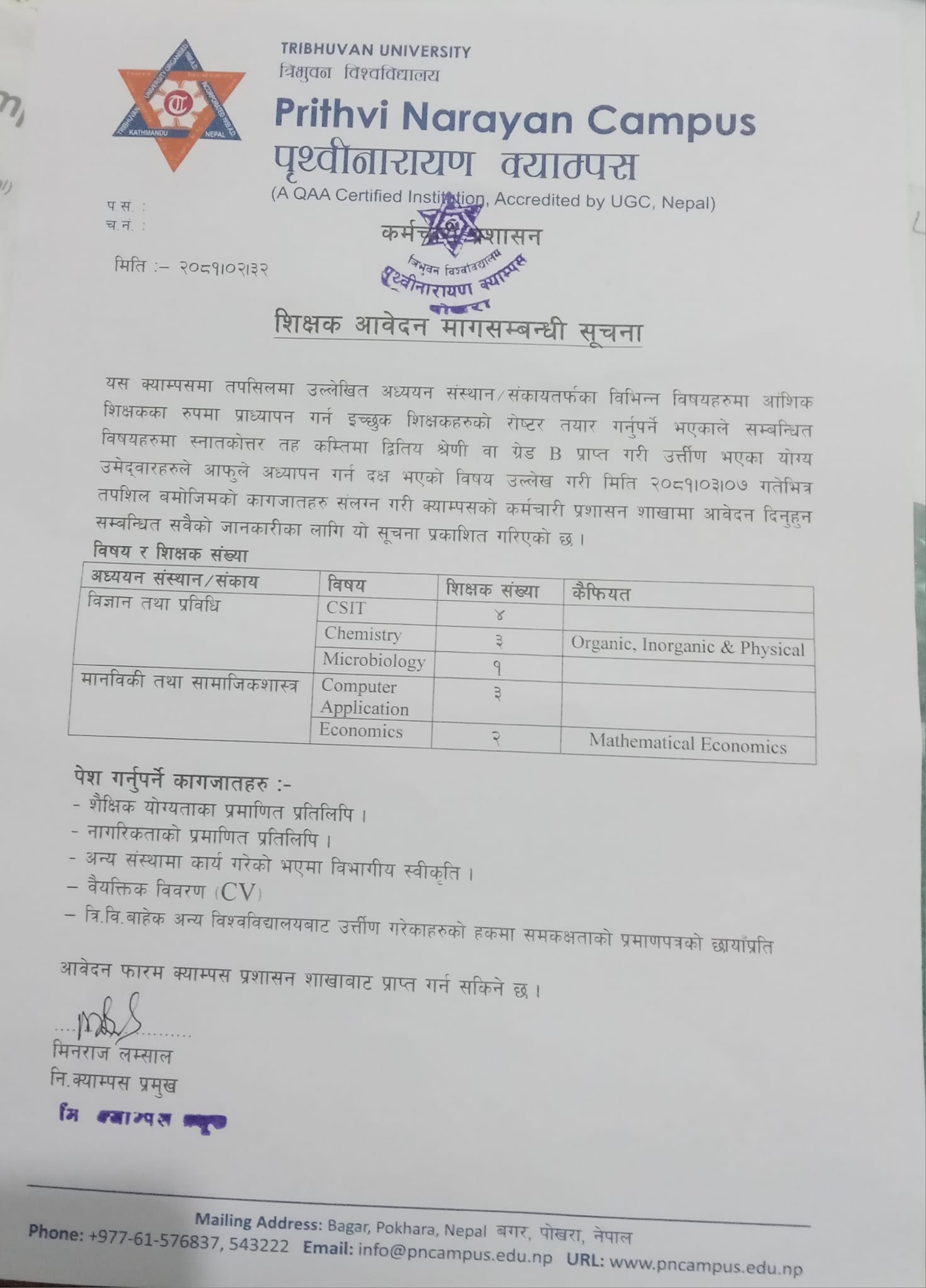शिक्षक आवेदन माग सम्बन्धि सुचना