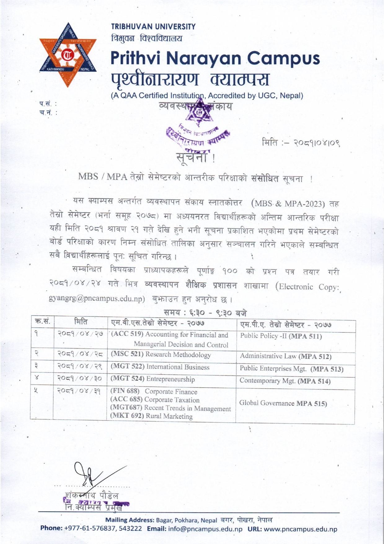 MBS/MPA तेस्रो सेमेष्टरको अन्तिम आन्तरिक परीक्षा सम्बन्धी सूचना ।