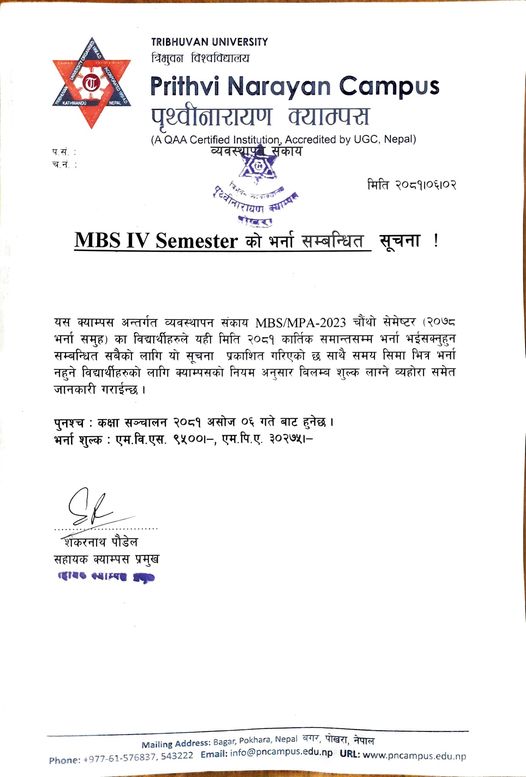 MBS IV Semester को भर्ना सम्बन्धि सूचना।