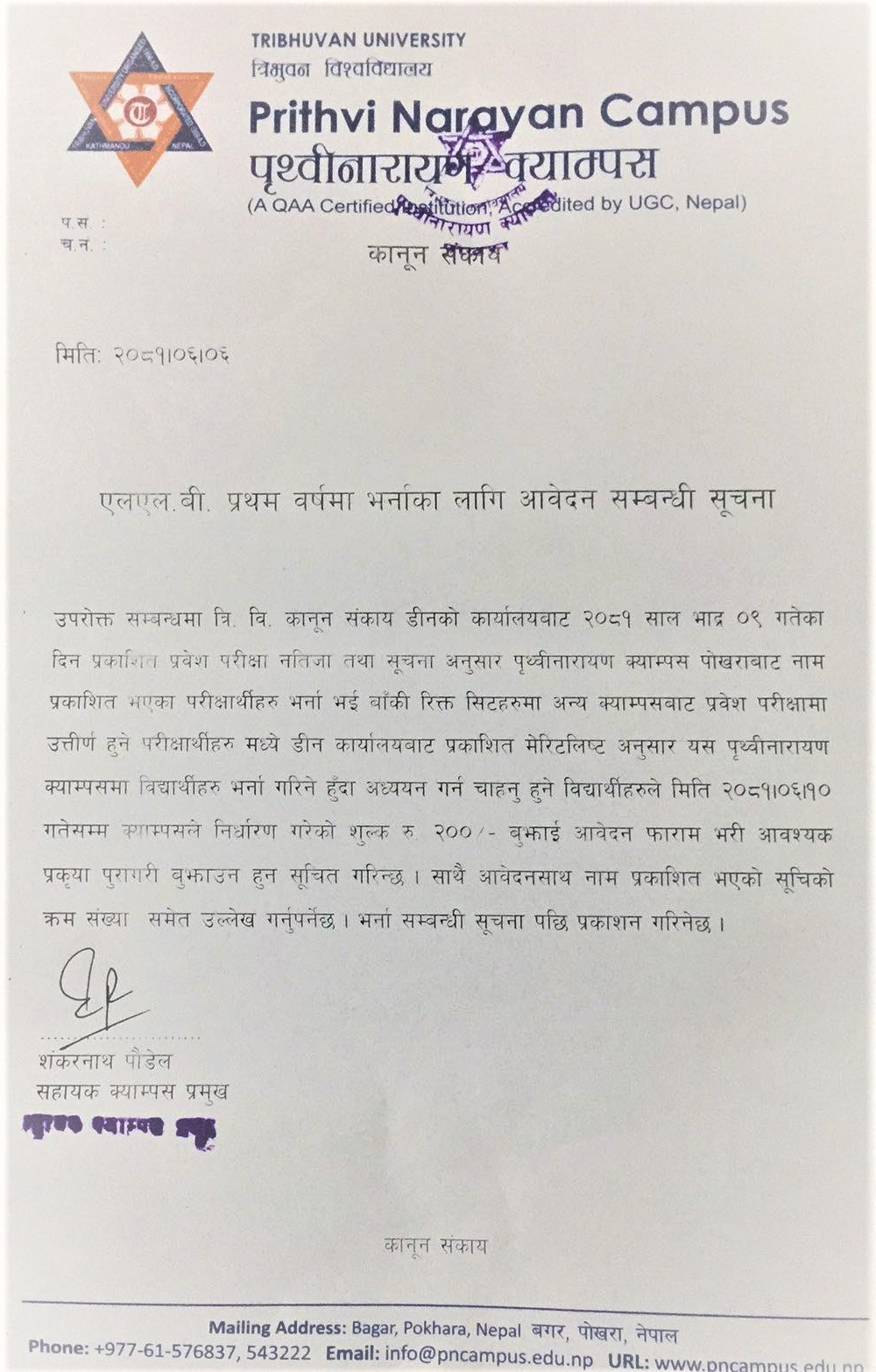 LLB प्रथम वर्षमा भर्नाका लागि आवेदन सम्बन्धी सूचना
