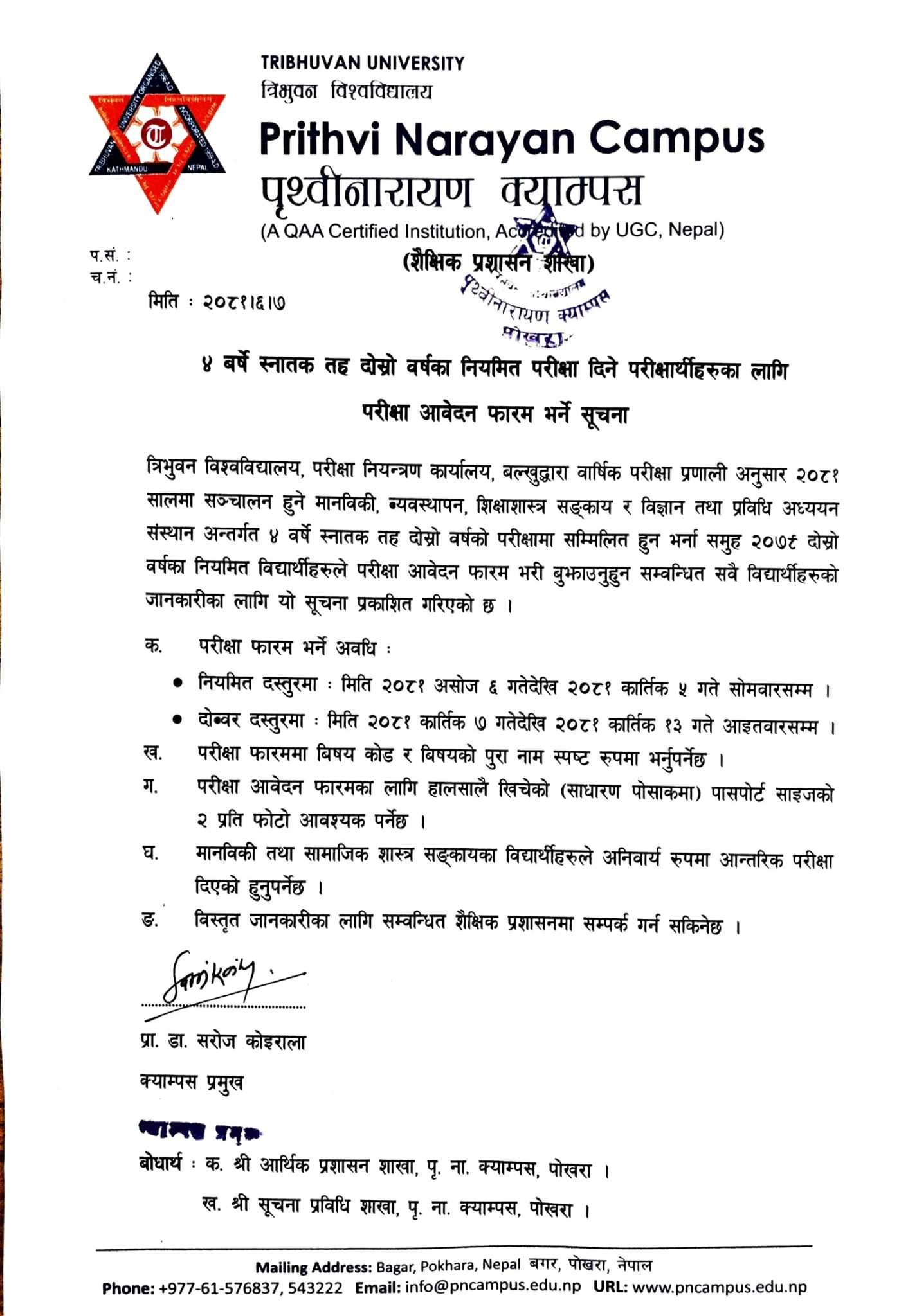 चार बर्षे स्नातक तहको दोस्रो बर्ष को नियमित परिक्षा फारम भर्ने सम्बन्धी सूचना