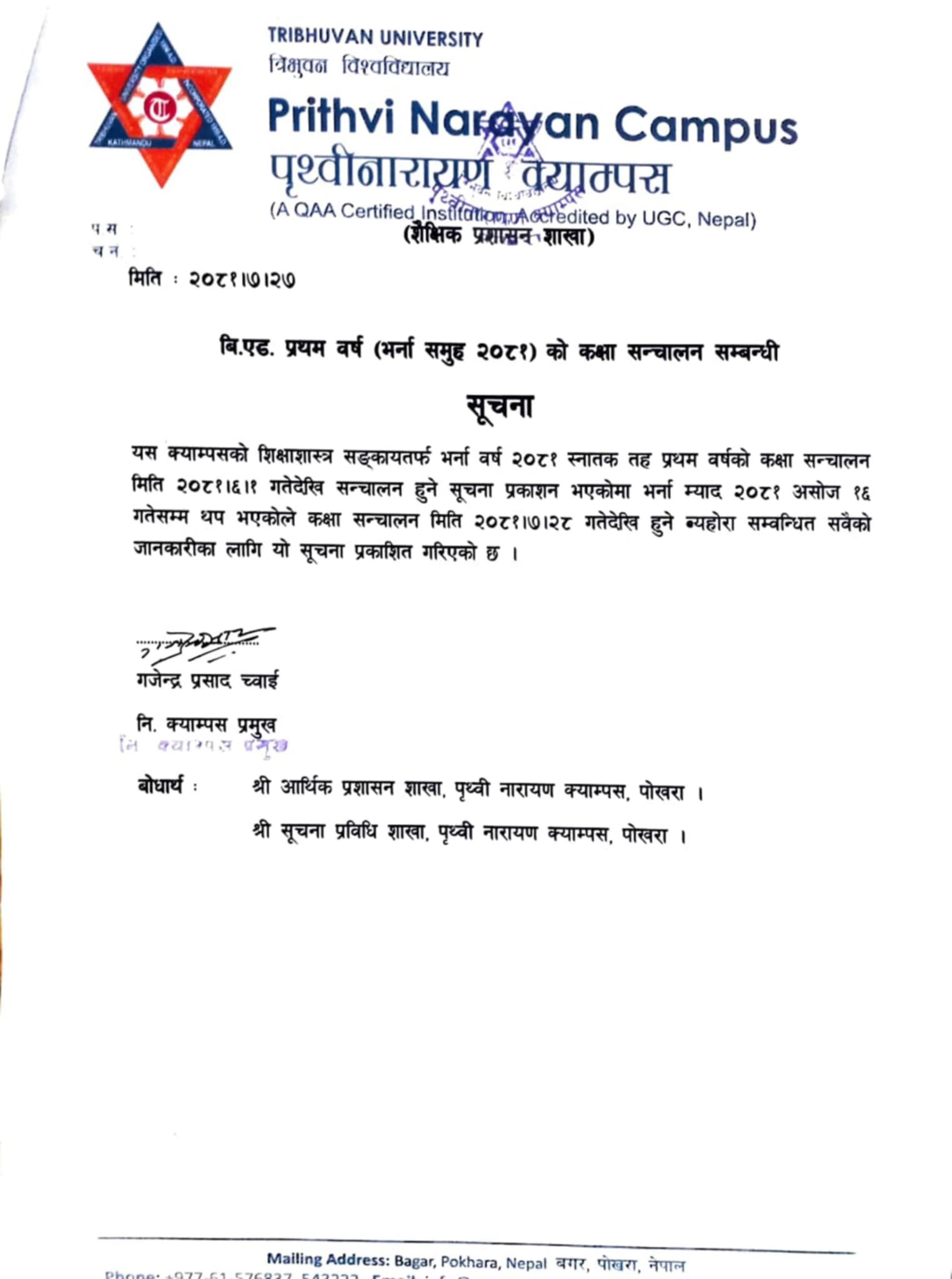 BEd चौंथो बर्षको भर्ना तथा कक्षा संचालन संबन्धी सूचना