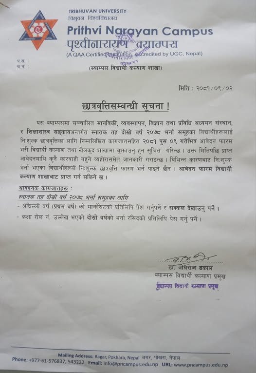 छात्रवृत्तिसम्बन्धी सूचना