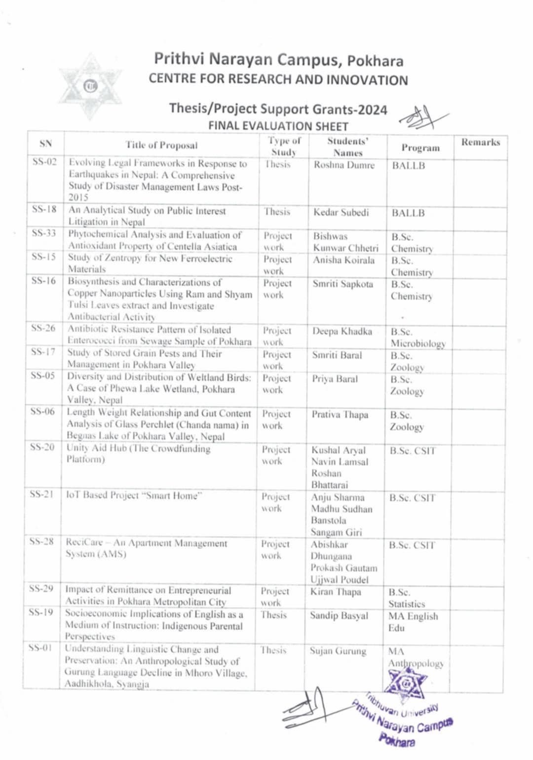 लघु-अनुसन्धान अनुदान आवेदक नामावली प्रकाशन सम्बन्ध...