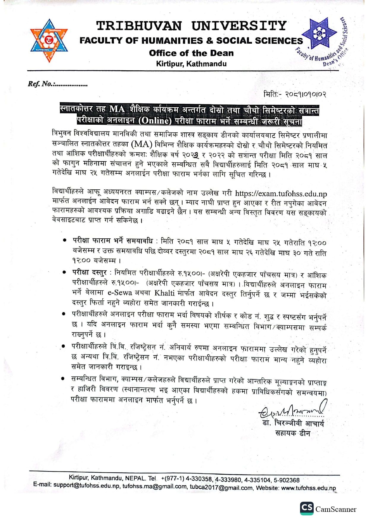 स्नातकोत्तर तह MA शैक्षिक र्कायक्रम अन्तर्गत दोस्रो तथा चौथो सिमेष्टरको सत्रान्त परीक्षाको अनलाइन (Online) परीक्षा फाराम भर्ने सम्बन्धी जरूरी सूचना।