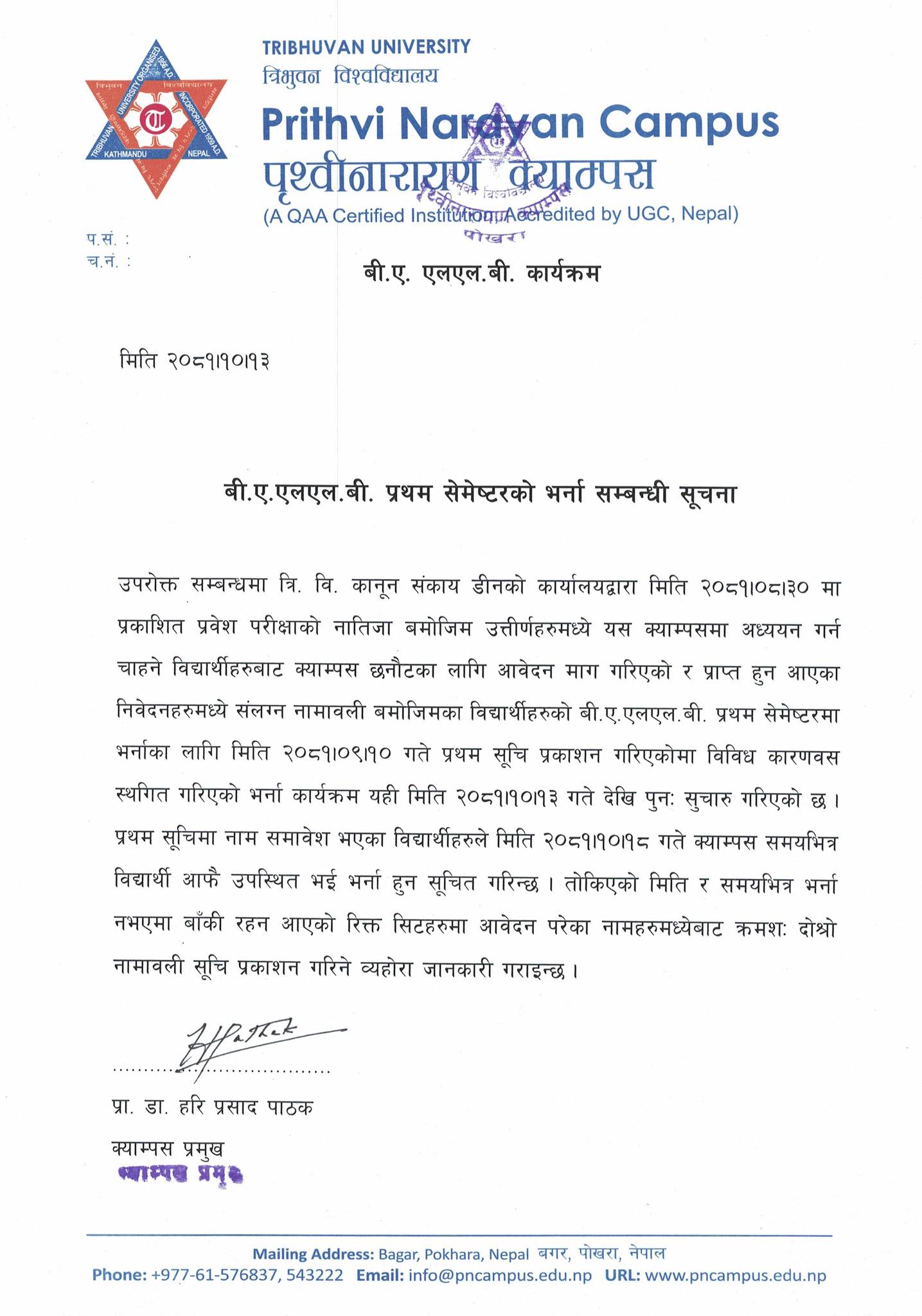 बी.ए.एलएल.बी. प्रथम सेमेष्टरको भर्ना सम्बन्धी सूचना ।