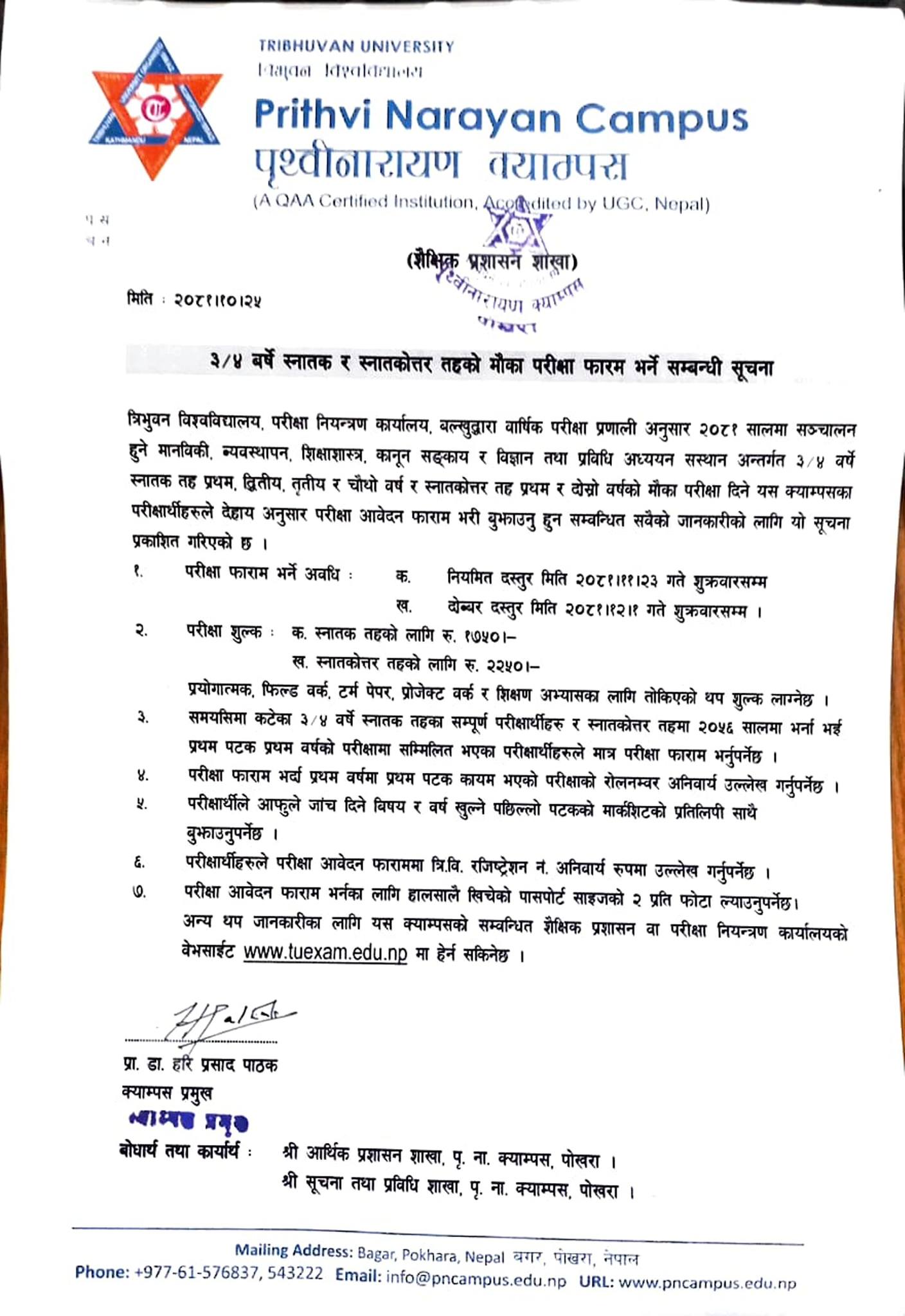 ३/४ बर्षे स्नातक तह र स्नातकोत्तर तहको परिक्षा फारम भर्ने सम्बन्धि सूचना