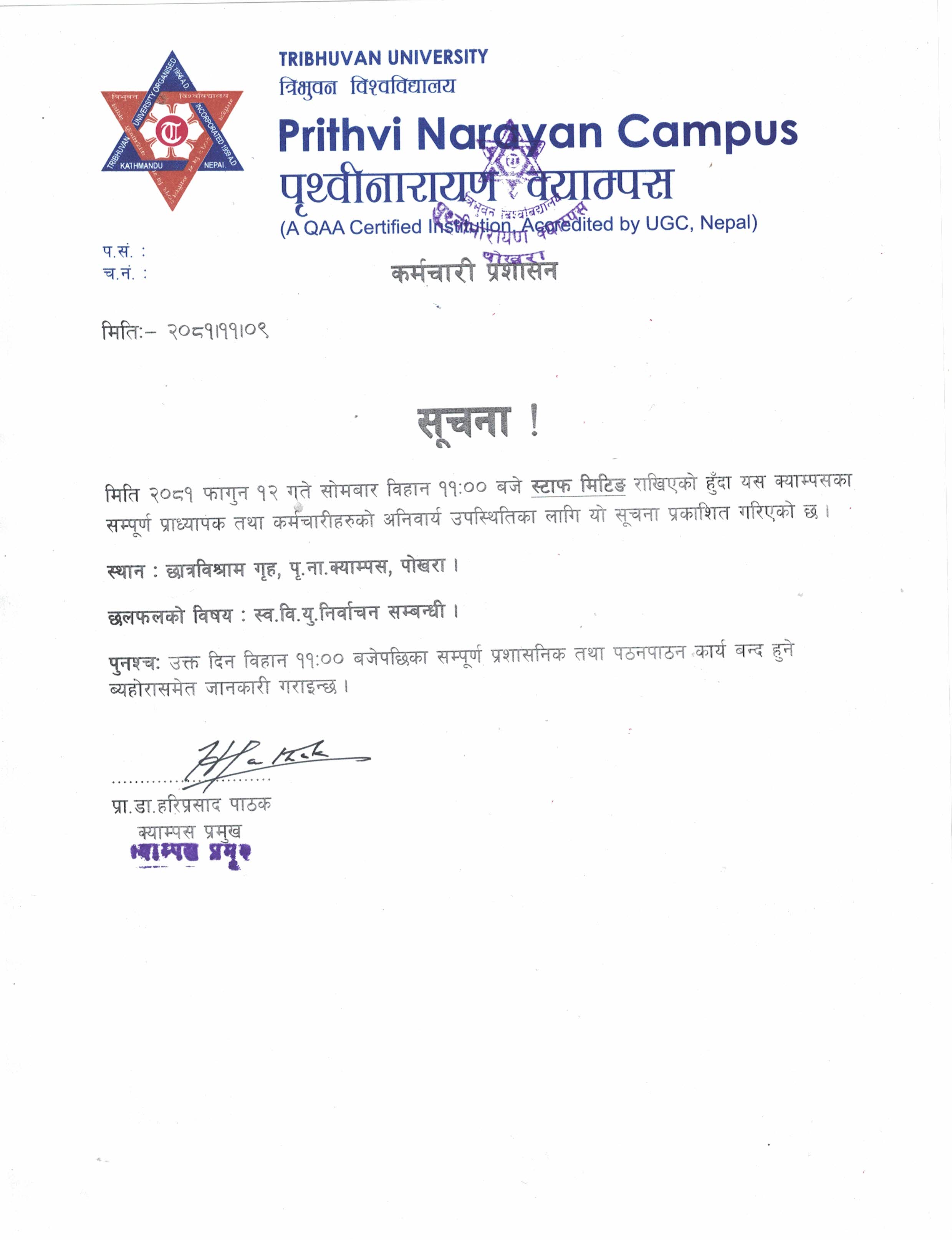 कर्मचारी बैठक सम्बन्धी सूचना।