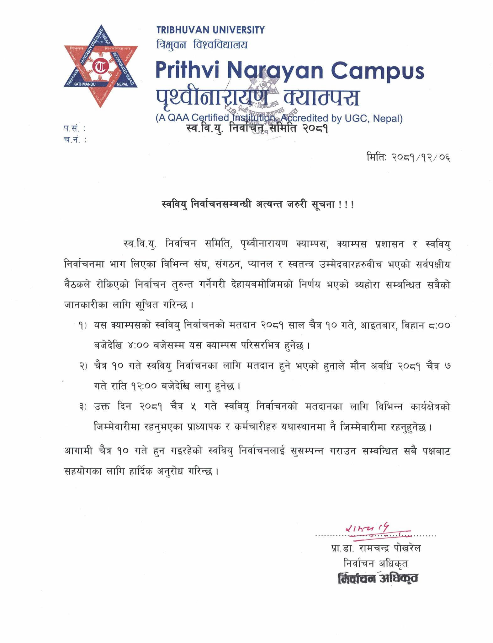 स्ववियु निर्वाचनसम्बन्धी अत्यन्त जरुरी सूचना