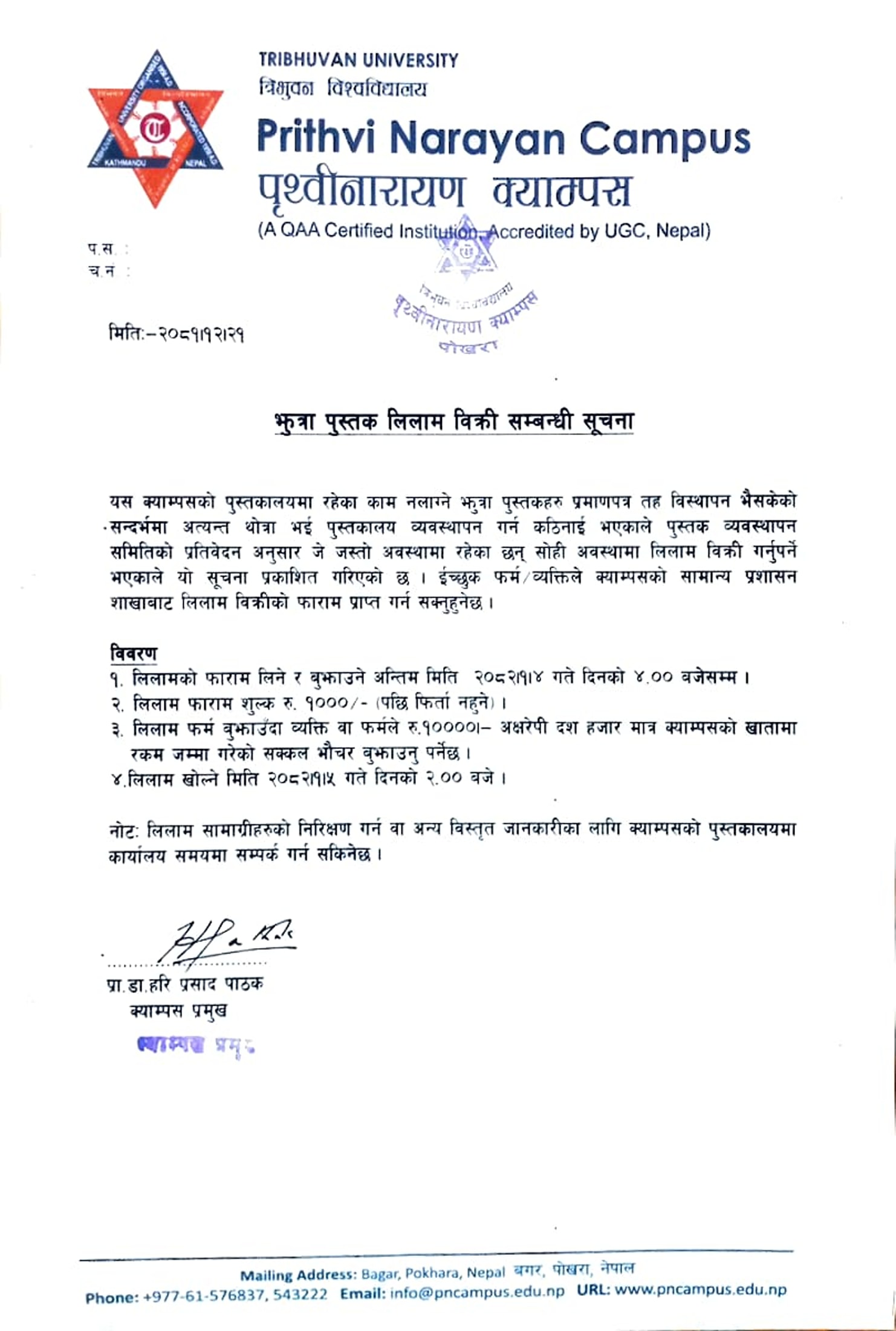 झुत्रा पुस्तक लिलाम विक्री सम्बन्धी सूचना