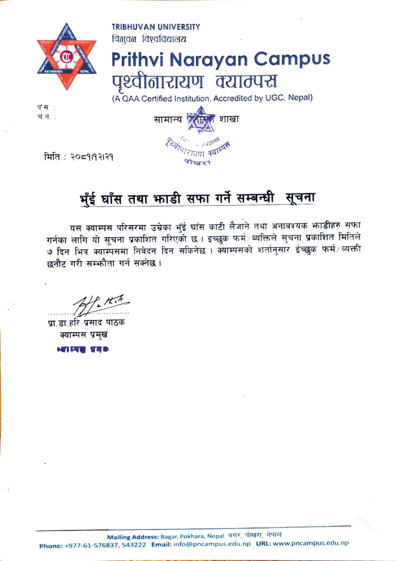 भुंई घांस तथा झाडी सफा गर्ने सम्बन्धी सूचना