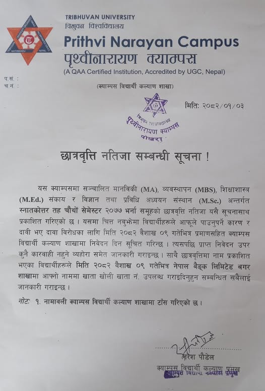 छात्रवृत्ति नतिजासम्बन्धी सूचना