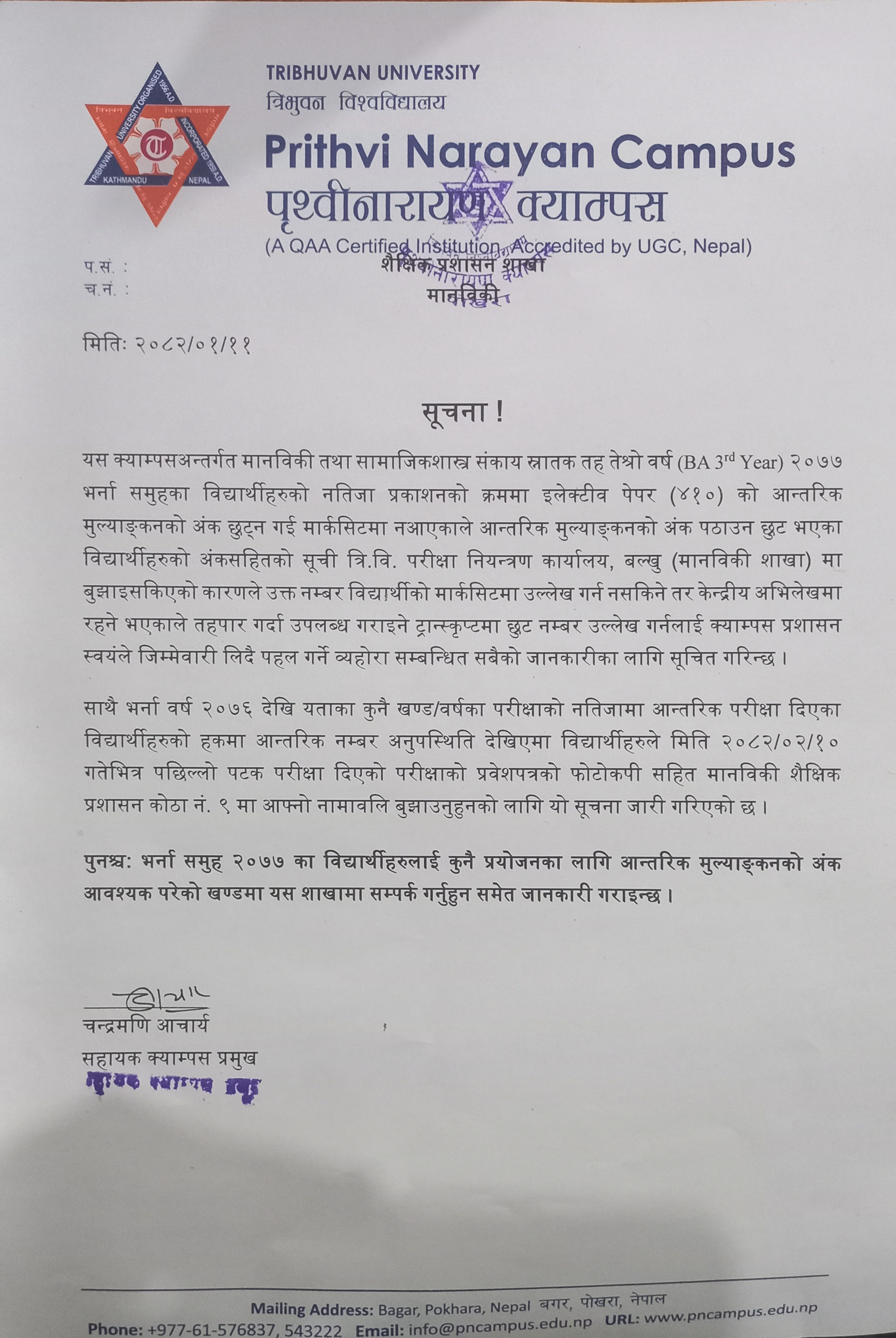 B.A. दोश्रो वर्ष (भर्ना समूह २०८१) को आन्तरिक परीक...