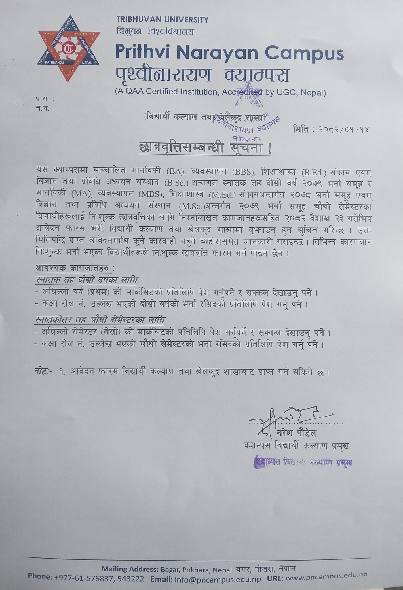 छात्रवृत्तिसम्बन्धी सूचना