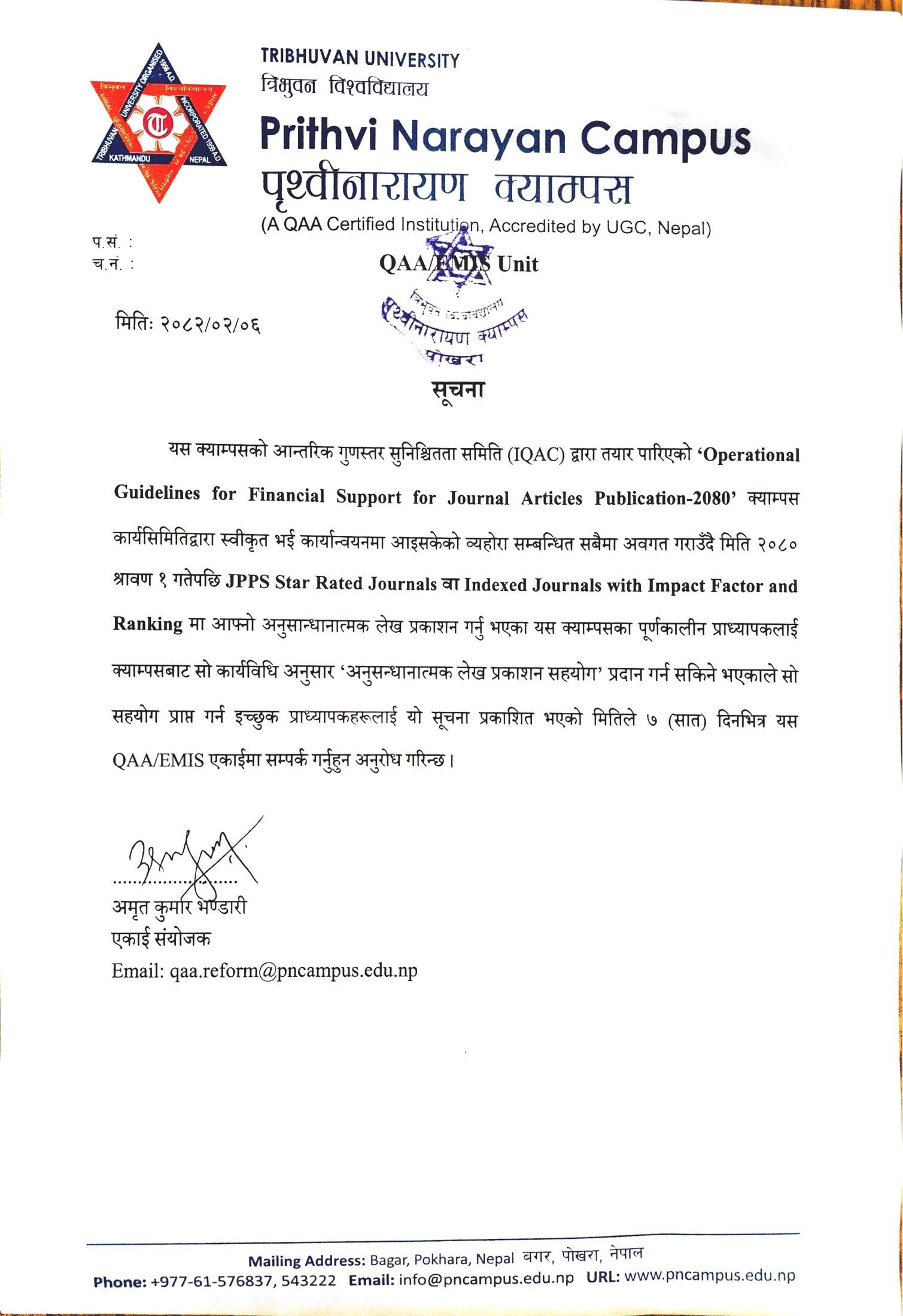 अनुसन्धानात्मक लेख प्रकाशन सहयोग सम्बन्धि सूचना ।