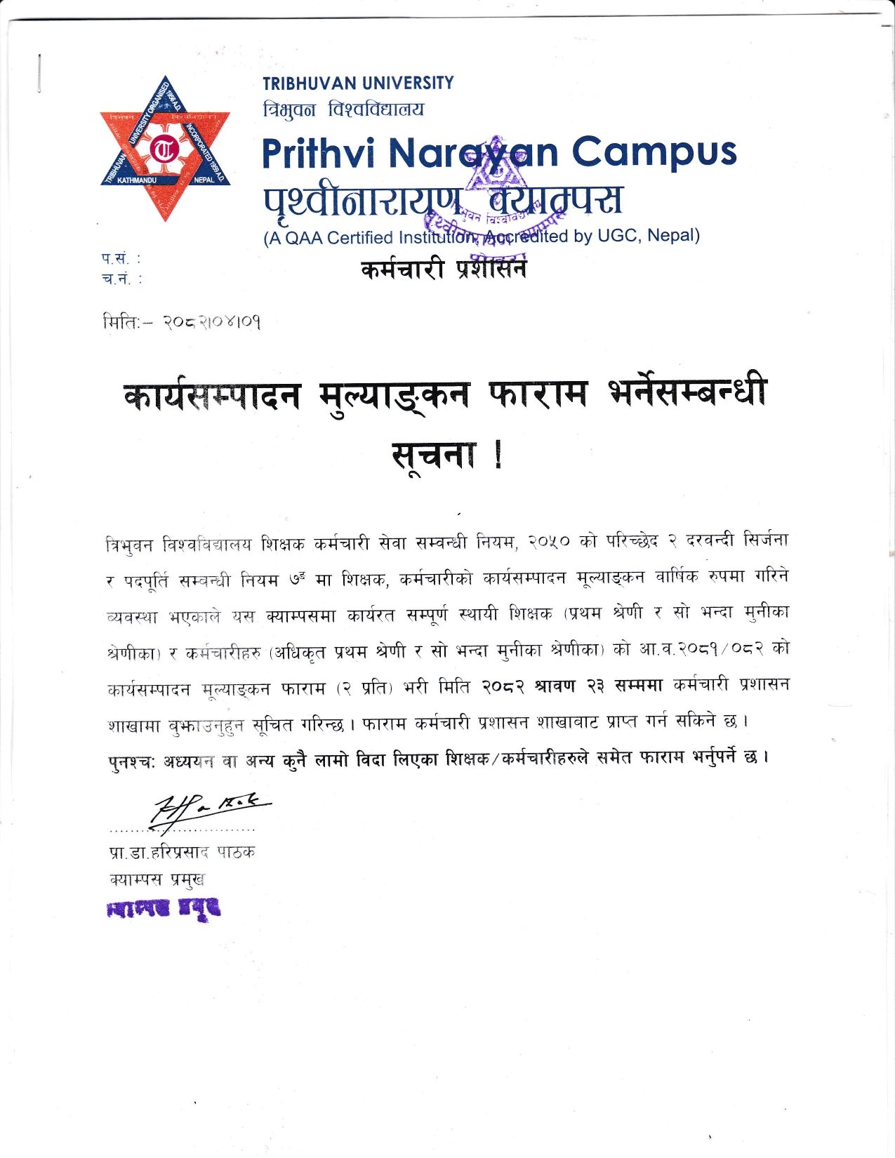 कार्य सम्पादन मुल्यांकन फारम भर्ने सम्बन्धी सुचना