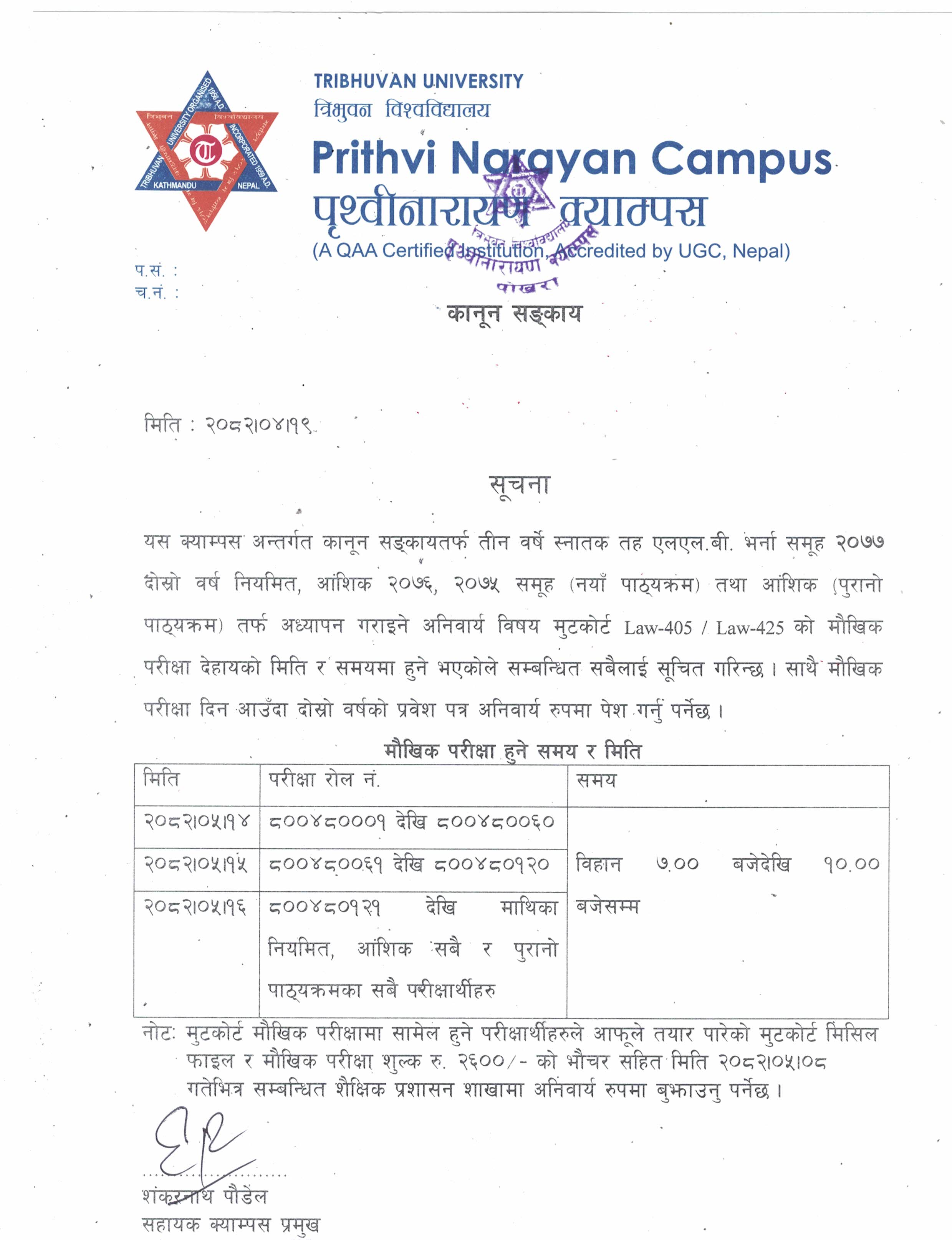 MA चौंथो सेमेष्टर भर्ना समुह २०८० को आन्तरीक परिक्...