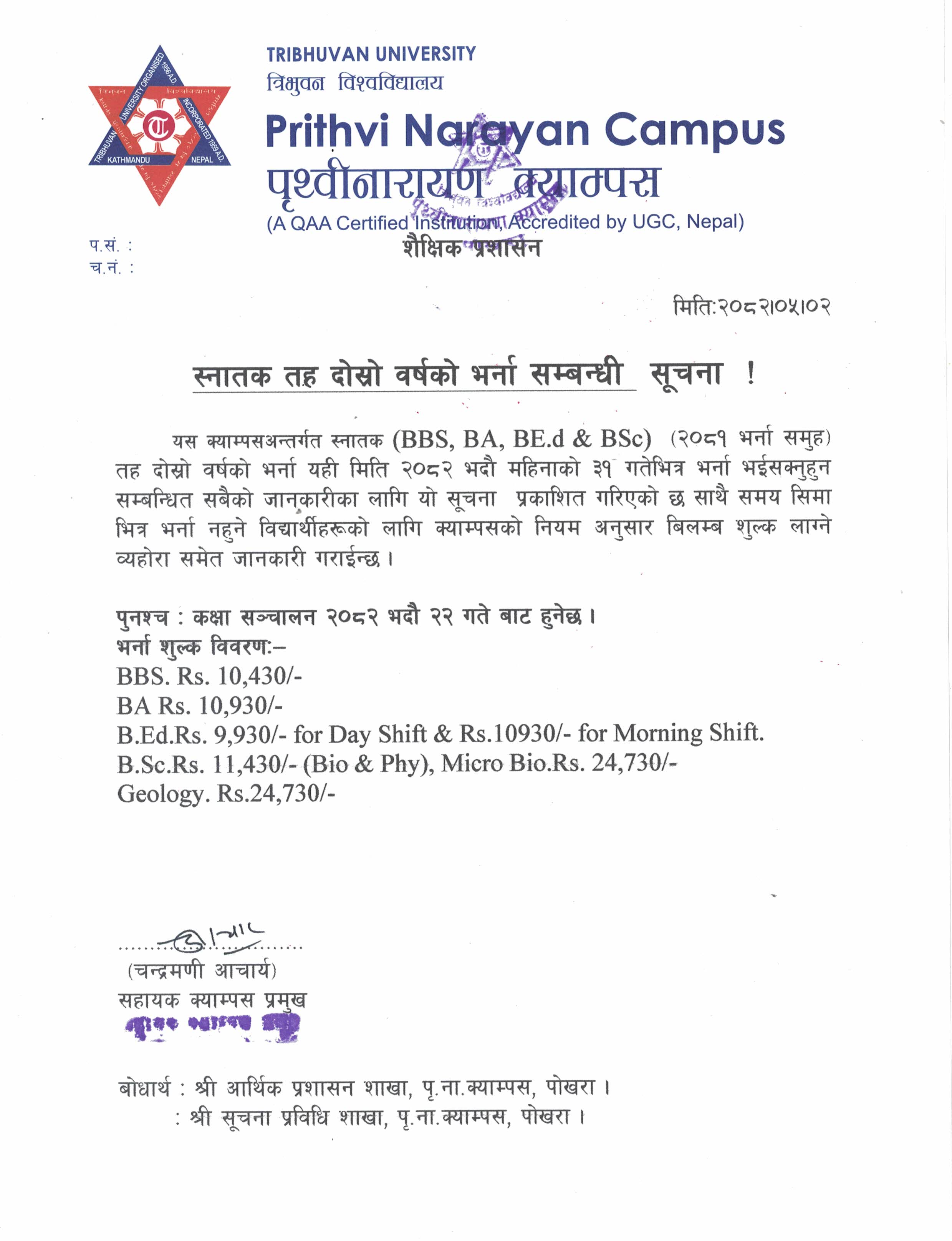 स्नातक तह दोस्रो बर्षको भर्ना सम्बन्धी सूचना