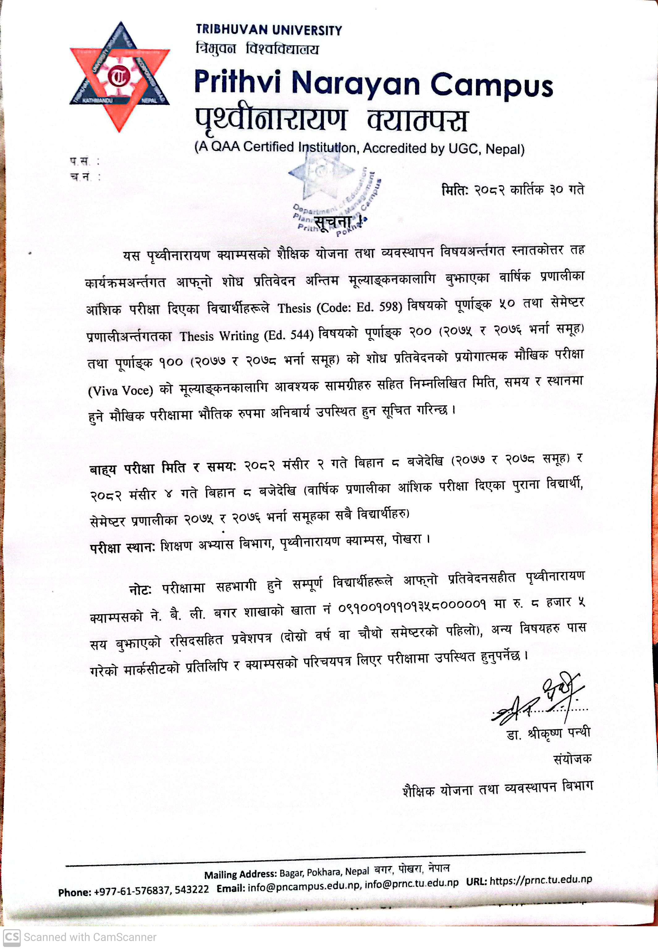 MA चौंथो सेमेष्टर भर्ना समुह २०८० को आन्तरीक परिक्...