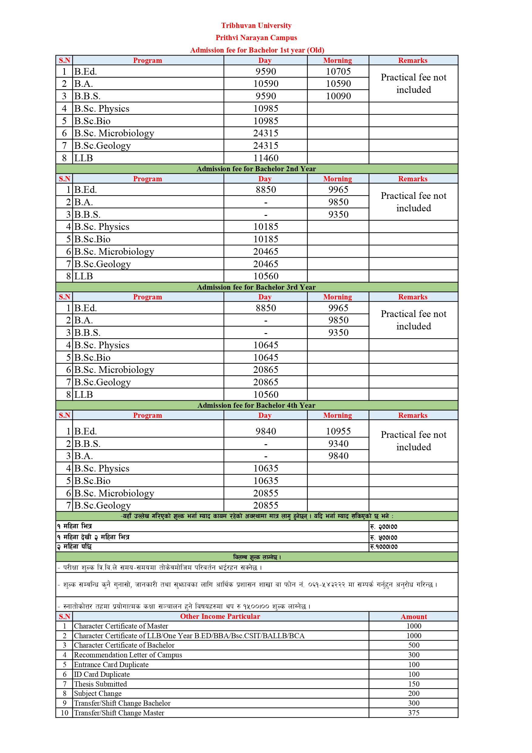 स्नातक तह वार्षिक प्रणालीमा २०७९ साल भर्नासमुह सम्मका विद्यार्थीहरुका लागि लागु हुने शुल्क विवरण ।