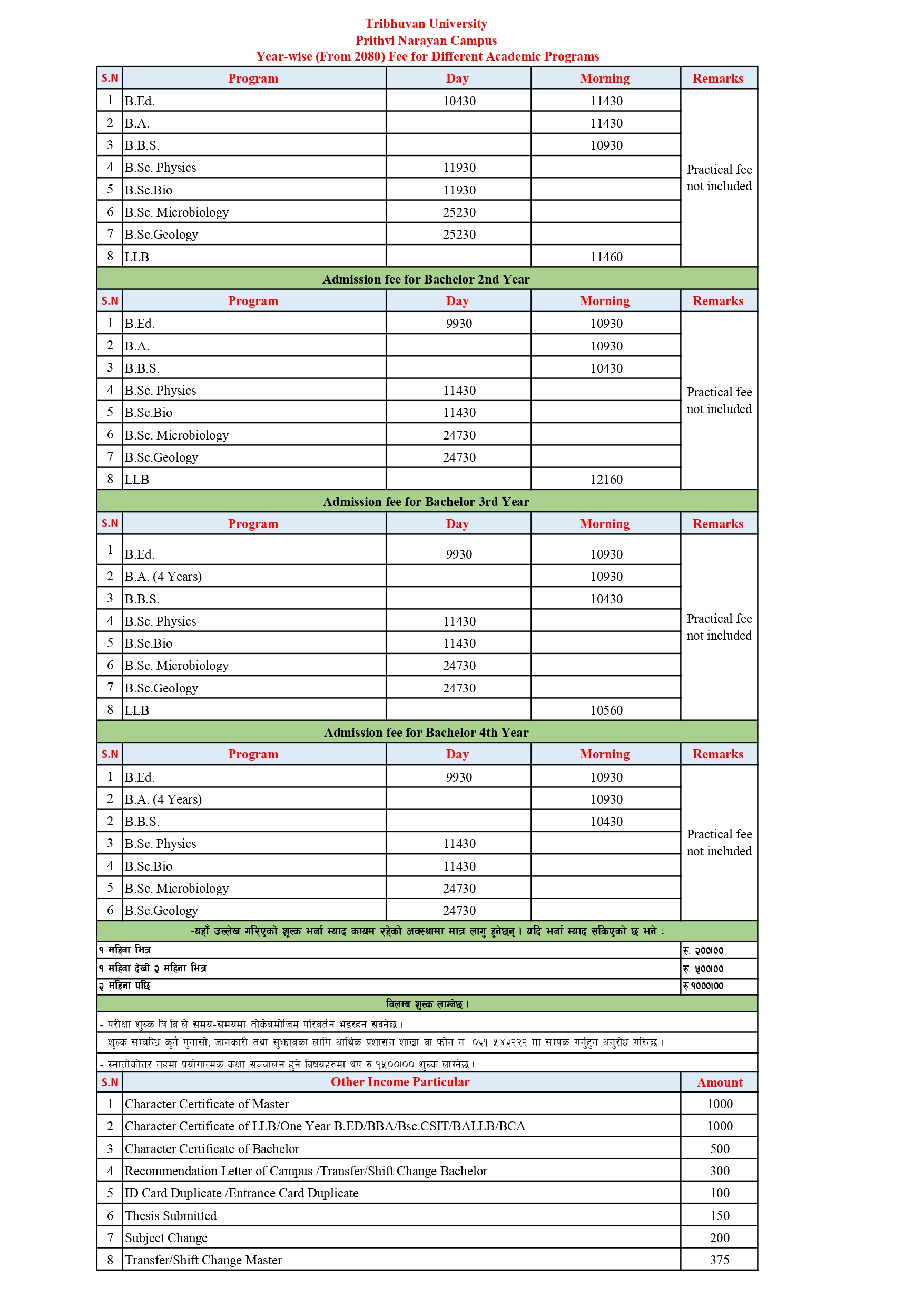 स्नातक तह वार्षिक प्रणालीमा २०८० साल देखिको भर्नासमुहका विद्यार्थीहरुका लागि लागु हुने शुल्क विवरण ।